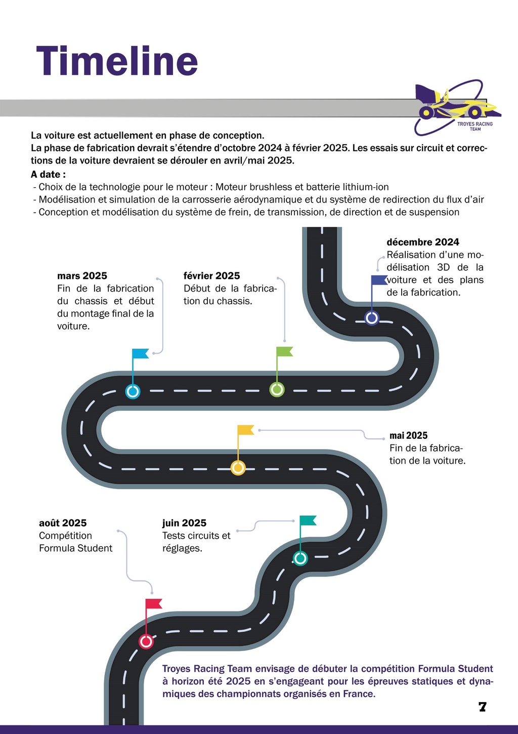 To maintain this dynamic team spirit within our school and establish ourselves as a permanent fixture on the Formula Student France scene.
